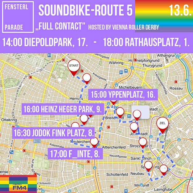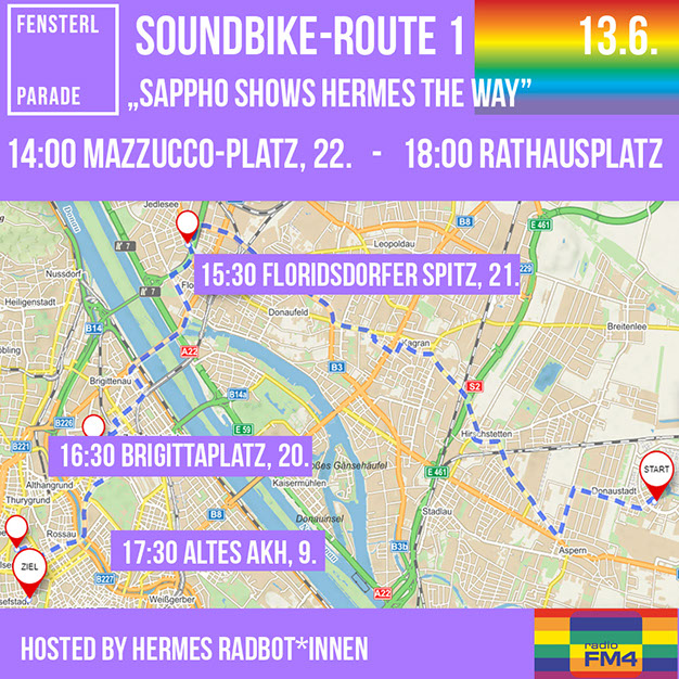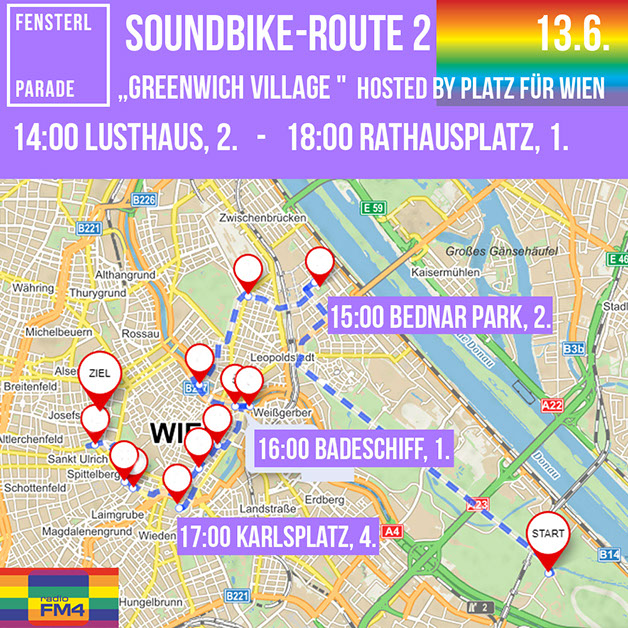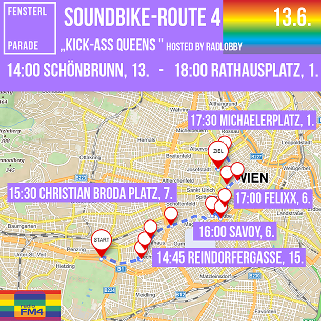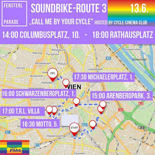 Auf 5 Routen sorgen Soundräder mit Begleitung für die Beschallung der Fenster und Grätzl. Please, welcome them in your hood! Die Fahrten finden in Kleingruppen statt, die auf Einhaltung der Corona-Abstandsregel achten.